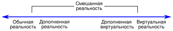 Дополненная виртуальность является частью континуума реальность-виртуальность[1], который охватывает все варианты и композиции реальных и виртуальных объектов. К понятию AV относится виртуальное пространство, в которое интегрированы физические элементы, объекты или люди, с возможностью взаимодействия с виртуальным миром в режиме реального времени.