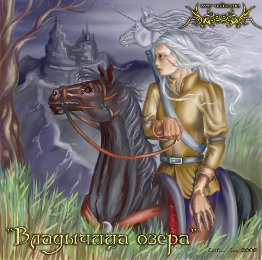 | «Владычица Озера»[18] | Цири, перемещаясь по временной и пространственной спирали, оказывается в мире эльфов народа Ольх (Aen Elle), бежавших сюда во время войны с людьми, и ждавших от дочери «Старшей крови» исполнения ею и её ребёнком «Пророчества Итлины», обещавшего эльфам возврат на землю. Постоянно ошибаясь, попадая в чужие миры и времена Цирилла, с помощью друга — единорога, все же нашла заветное озеро и отправилась в нужное место и время. | «Чёрная лошадь под красной попоною Мчится сквозь время чёрной стрелой. Девушка скачет, как ветер свободная В брызгах воды из-под лёгких подков.» хор. |