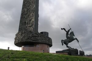 - Площадь Дорогомиловская Застава с памятником Москва — город герой.