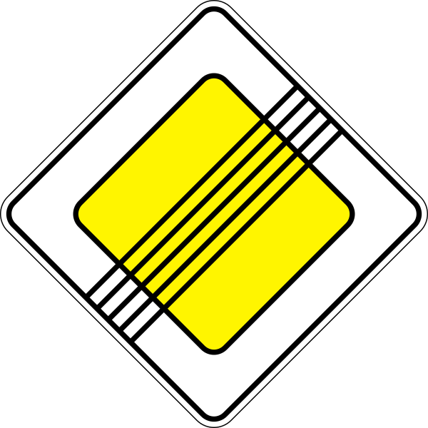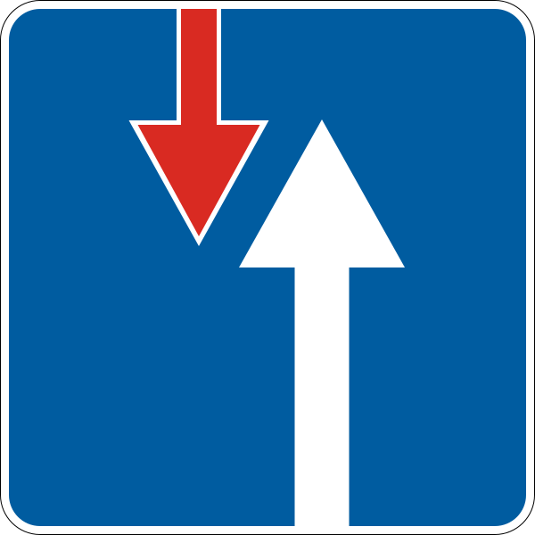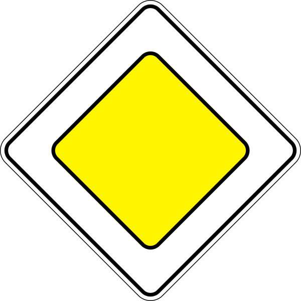 Приоритетные знаки регулируют порядок движения транспортных средств. Знак главной дороги подсказывает водителям, что они имеют преимущественное право на всех перекрестках впереди на дороге до конца действия знака. Дорожные знаки преимущества в движении используются там, где дорога слишком узкая, чтобы разрешить движение транспортных средств бок о бок, а только поочередно.
