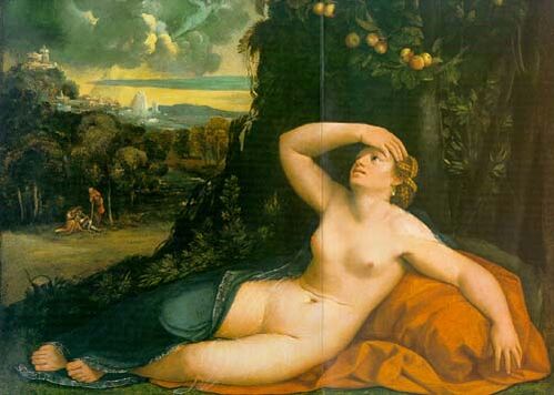 - Мифологическая сцена, около 1524; Масло, холст, 164 x 145 см, Музей Гетти, Лос-Анджелес