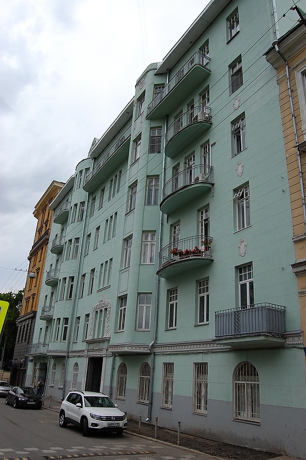 Около 1901 года на участке были построены здание для Реального училища (д. 7/10 стр. 5; ныне в этом здании размещается школа № 57) и доходный дом на углу переулков (д. 7/10 стр. 1), последний был заменён новым зданием в 2000-е годы. В 1912 году между ними был возведён ещё один доходный дом по проекту архитектора Григория Фёдоровича Ярцева. Шестиэтажный дом стоит вплотную к зданию училища, в своё время между ними имелся проход, ныне заложенный. Шталмейстерский дом примыкал к зданию со двора, часть его была даже разобрана ради строительства доходного дома. Главный фасад дома исполнен в неоклассическом стиле и имеет асимметричную композицию. Выделяются два эркера разной формы — полукруглый и трёхгранный. На фоне незначительного количества элементов декора выделяется портал входа и трёхчастное окно над ним: широкие пилястры по бокам, антаблемент с лепниной в виде цветов, окно окружено лепниной с фруктами и цветами. Левее расположена ведущая во двор проездная арка, украшением которой служит замковый камень в форме львиной маски. Над полукруглым эркером выполнен аттик, с лепным маскароном в духе мезоамериканской культуры.