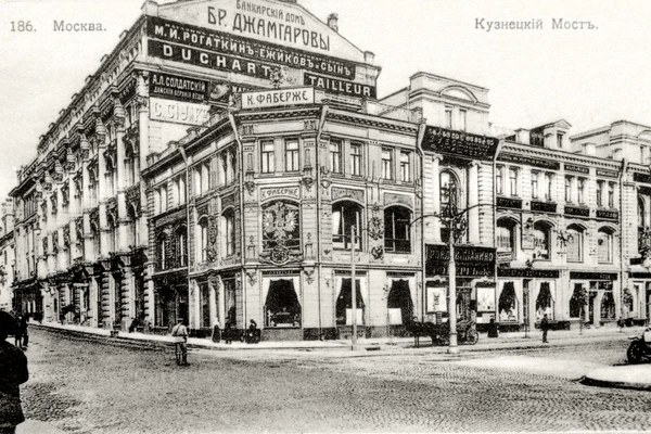 После постройки доходного дома с его угла разместился магазин фирмы Фаберже. Здесь же находился мебельный магазин фирмы П. А. Шмита (позднее здесь бывал Н. П. Шмит[10]), размещались конторы и редакции издателя А. Я. Липскерова — популярной московской газеты «Новости дня» и журнала для велосипедистов «Циклист», контора газеты «Новый путь», книжный магазин с библиотекой «Агентства Парижской прессы», зубоврачебный кабинет Д. Фейнемана, нотный магазин «Э. Эберг и К°», кондитерские «Флей» и Дубле, ювелирные магазины Овчинникова, Ф. Лорие и А. Усталло[11][4][12][3]. В 1906 году фасад здания был незначительно изменён архитектором А. Э. Эрихсоном[13], в 1907 году — В. В. Шервудом. Данные перестройки практически не отразились на композиции и общем виде здания, затронув лишь некоторые элементы декора[7].