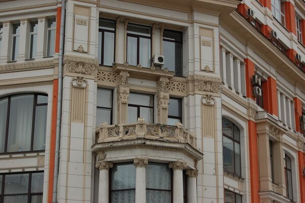 В 1931 году дом был надстроен двумя этажами.[1] По своему градостроительному положению дом визуально замыкает центральную часть улицы. Первоначальный проект предполагал строительство более грандиозного сооружения, однако в натуре это выполнено не было. Фасад здания богато украшен скульптурными и декоративными деталями, заимствованными Ивановым-Шицем из языка греческой классики. Во внешнем облике доходного дома выделяются также большие окна и доминирующие членения, подчёркнутые использованием различных материалов,— камня, штукатурки и керамической плитки, что характерно для московского модерна.[2] В целом стилистика здания определяется искусствоведами как «благородный „Style nouveau“ греческого типа a la Отто Вагнер». В композиции здания акцентирована его угловая часть, в которой устроен гранёный эркер со входом, увенчанным полуротондой во втором этаже, служащей, в свою очередь, балконом третьего этажа. Первоначально угловую и боковые части дома венчали мощные аттики, утерянные в ходе реконструкции. Надстройка здания значительно исказила его первоначальный облик и художественную целостность. Были утрачены и некоторые декоративные детали: металлический фриз углового эркера, декоративные вазы и парапеты над сандриками окон третьего этажа, маски женских голов в угловой части четвёртого этажа, львиные маски карниза и картуша.[3][4] Частично сохранилась первоначальная отделка входного вестибюля со стороны Кузнецкого Моста.[3] Помещения в первом этаже, как и во многих доходных домах, планировались для сдачи внаём коммерческим фирмам, в то время как верхние этажи и квартиры со двора сдавались в наём для проживания. Первый этаж здания занимал банк Г. Волкова с сыновьями, на втором и третьем этажах находился мебельный отдел магазина «Мюр и Мерилиз», ряд других контор.[5][6] Часть помещений сдавались под комфортабельные квартиры[7]. К дому со стороны Петровки примыкает ещё одно принадлежавшее Хомяковым здание — построенный по проекту О. Бове главный дом усадьбы, в котором жил известный публицист, философ и математик А. С. Хомяков, которого посещали здесь А. С. Пушкин, А. Мицкевич, Н. В. Гоголь и другие. У Хомякова жили Н. М. Языков и Б. Н. Чичерин.[8][7][9]