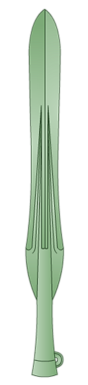- копьё с тонким стержнеобразным лезвием (яп. 細形銅矛) — использовалось в начале периода Яёй, обнаружено на севере острова Кюсю в урновых керамических захоронениях.