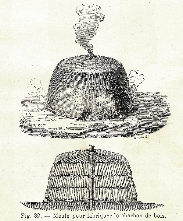 В России древесный уголь производили издревле. Кузнечные горны работали именно на древесном угле. Наиболее распространёнными способами получения были кучное и ямное углежжение. Вариантами кучного были «стог» и «кабан». Эти технологии были примитивными, процесс продолжался до месяца и требовал периодического контроля и обслуживания. Все газообразные и жидкие (в парах) продукты распада (а это около двух третей от исходной массы абсолютно сухой древесины) выбрасывались в атмосферу. Массовое производство угля по таким технологиям было возможно только в XVII—XVIII веке, когда плотность населения была низкой и многие территории не освоены. Уже с XIX века в России предпочитали простейшие кирпичные печи для изготовления угля.
