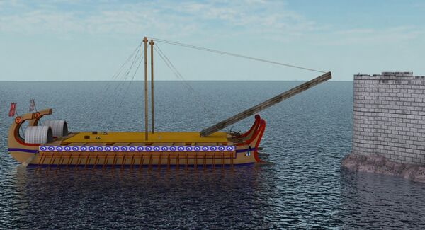 Использовали римляне военные корабли и для осад и штурмов городов на побережье. Кроме метательных машин использовались и штурмовые устройства, называемые «самбука» (из-за сходства с одноимённым музыкальным инструментом), позволявшие осаждающим взбираться на неприятельскую стену. Самбука спускалась на стену при помощи канатов, пропускавшихся через блок, укреплённый на вертикальной мачте. Марк Клавдий Марцелл в ходе Второй Пунической войны, действуя на Сицилии, применял разновидность самбуки с кораблей. Атака на Сиракузы с моря оказалась неудачной благодаря машинам Архимеда[6].