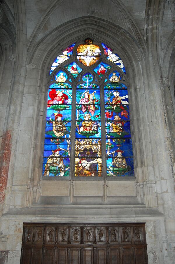В нынешнем образе композиция появляется в 1144 году на витраже аббатства Сен-Дени. Витраж этот не сохранился, но известна его копия в Шартрском соборе (около 1450 года). Э. Маль предполагает, что автором композиции был известный строитель Сен-Дени аббат Сюжер. Впоследствии эта композиция получила широкое распространение как на латинском западе, так и на православном востоке. Развитие композиции шло в сторону как увеличения количества персонажей, так и введения новых сюжетов.