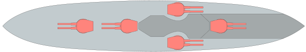 Некоторое время ещё потребовалось на выработку оптимального расположения вооружения корабля нового типа — были опробованы и отброшены, в частности, ромбовидное («Дредноут», Великобритания, 1906); смешанное из двух концевых башен и двух траверзных, расположенных в середине корабля по диагонали — en echelon («Нептун», Великобритания, 1908); из двух концевых башен и четырёх, расположенных по углам цитадели («Гельголанд», Германия, 1908); в диаметральной плоскости корабля на одной линии, при котором продольный огонь могли вести только по одной башне на нос и корму («Севастополь», Россия, 1909) — но в конечном итоге остановились на линейно-возвышенном, которое гарантировало и ведение мощного продольного огня, и хорошую защиту расположенных посередине корпуса корабля, а не вблизи бортов, башен (заложенный ещё до получения сведений о «Дредноуте» и, соответственно, полностью независимый от него по концепции «Мичиган», США, 1906 — имевший такой же бортовой залп, как и у «Дредноута» при меньшем на два общем числе орудий).