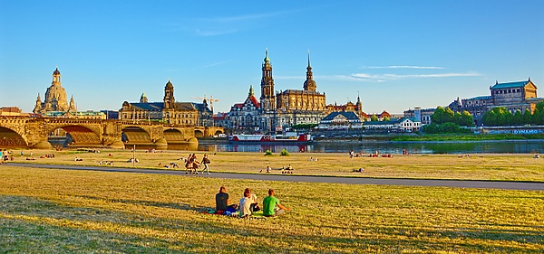 Основные памятники Дрездена вытянулись вдоль Эльбы. В 1893 г. через неё был перекинут мост, за свою элегантность прозванный «Голубое чудо». Туристические поездки по реке совершает флотилия старинных колёсных пароходов, именуемая «Белый флот» (Weiße Flotte). До 2009 года вся долина Эльбы входила в список мирового культурного наследия ЮНЕСКО[21], однако затем была исключена из него: это произошло по причине строительства нового моста через Эльбу в исторической части города.