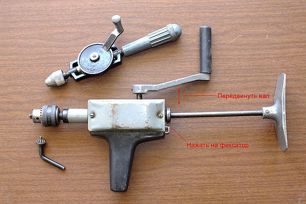 Большие ручные дрели имеют плечевой упор и рукоятку-держатель, облегчающие сверление.