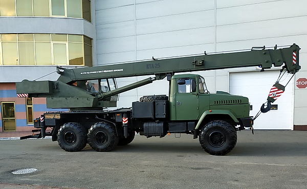 - стреловые автомобильные краны серии «КТА» с телескопической стрелой (выпускались под торговой маркой «Силач») грузоподъёмностью от 18 до 40 т на шасси КрАЗ, КамАЗ и МАЗ[41] (основные модели - КТА-18, КТА-25, КТА-28 и КТА-32 грузоподъёмностью 18, 25, 28 и 32 т соответственно)[26][42]