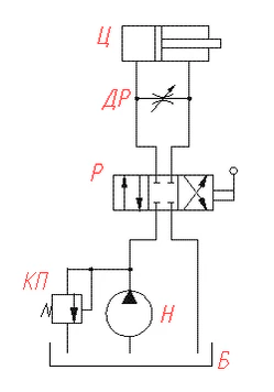 - изменением эффективного сечения потока через гидродроссель, включённый параллельно гидродвигателю,