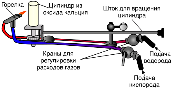 Эффект яркого свечения раскалённого тела из оксида кальция (негашёной извести) впервые был открыт в 1820-х годах британским учёным Голдсуорси Гёрни на базе его работ с кислородно-водородными горелками, авторство которых обычно приписывают Роберту Хэйру.