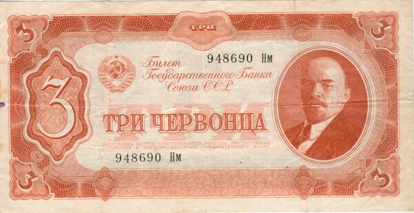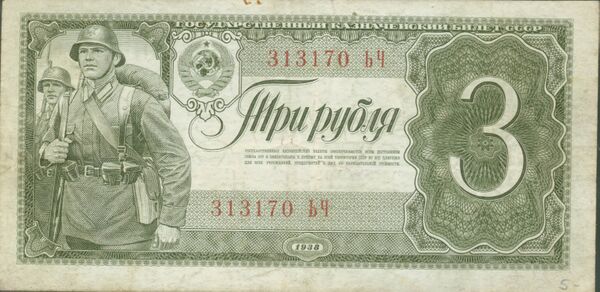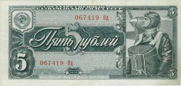 В 1938 году в связи с расширением Союза и изменением герба СССР (вместо шести лент, обвивающих колосья, их стало 11) была произведена замена казначейских билетов образца 1934 года на новые номиналом в 1, 3 и 5 рублей. Иван Дубасов изобразил на лицевой стороне фигуры шахтёра-стахановца, красноармейца[10] и лётчика[2].