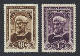 - 1942 — А. Навои (ЦФА [АО «Марка»] #821—822; Sc #857—858),