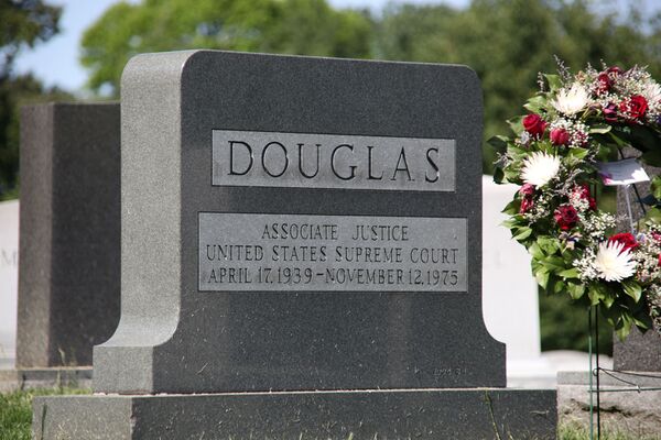 Уильям О. Дуглас умер 19 января 1980 года[5] и был похоронен на Арлингтонском национальном кладбище. На его надгробии он описан как судья Верховного суда и как рядовой Армии США, однако Мёрфи высказал сомнение, что 10-недельная служба Дугласа в армейском корпусе подготовки студентов Уитменского колледжа даёт ему ветеранский статус. Сам Дуглас заявлял, что три месяца воевал в Европе в качестве армейского рядового, но это не соответствует действительности[6].