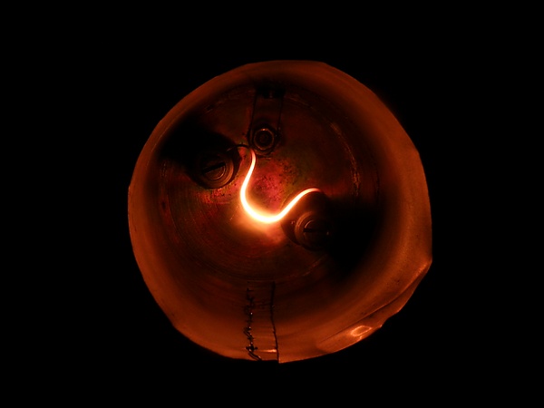 Испущенные накаленным катодом электроны вылетают из тонкого катодного слоя с почти одинаковыми скоростями и ионизуют газ, образуя плазму, которая заполняет остальной объем. Ионизации осуществляется прямыми и ступенчатыми ударами. Плазма взаимодействует с катодным слоем таким образом, что в слой из плазмы поступает столько ионов, сколько необходимо для поддержания стационарного режима разряда.