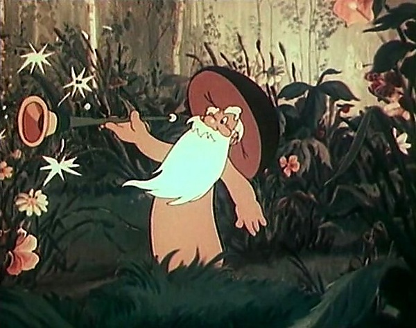 Он дал девочке волшебную дудочку, которая, играя, заставляла ягоды показываться из-под листиков. Но дудочку старичок просто так подарить не мог. Он предложил обменять её на Женин кувшинчик. Девочка согласилась и, взяв дудочку, побежала на свою полянку. Там она приказала дудочке играть, и тут же все ягоды оказались на виду.