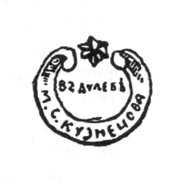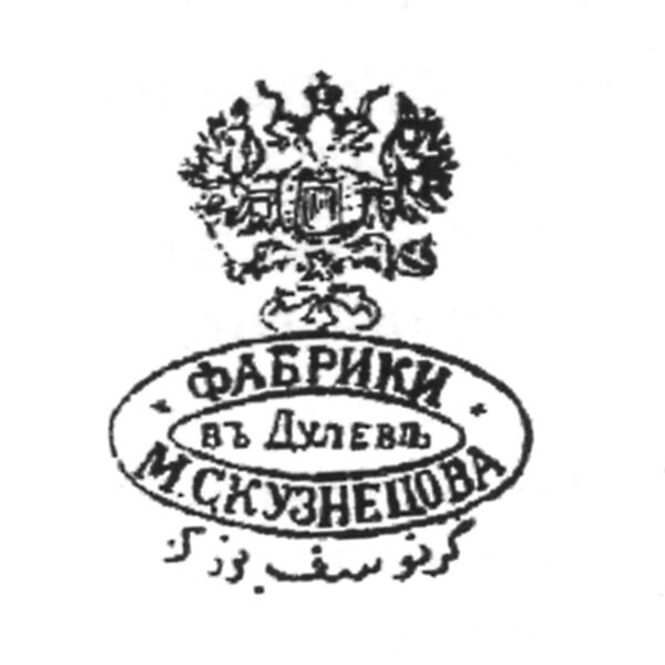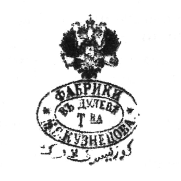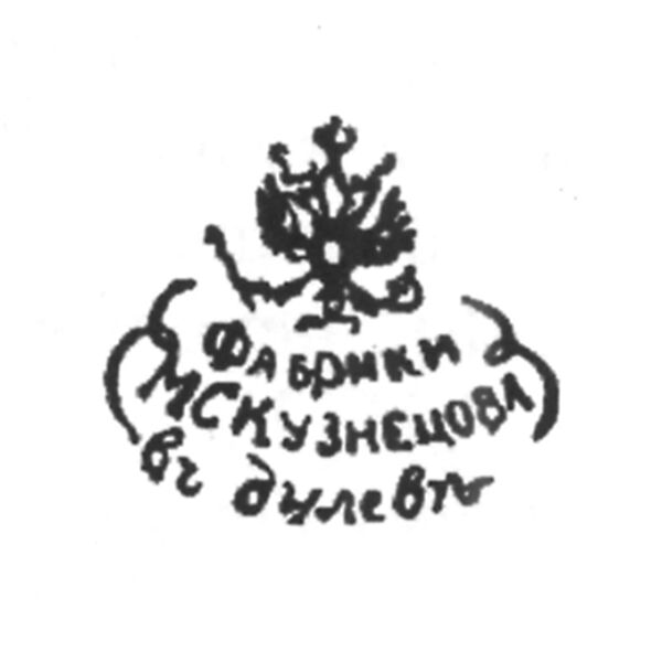 Ниже представлена марка завода в период Товарищества производства фарфоровых и фаянсовых изделий М. С. Кузнецовых (1889—1918 гг.)