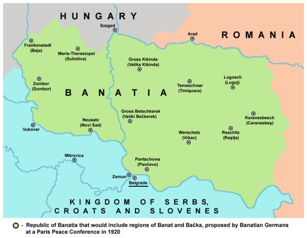 После Первой мировой войны в соответствии с Сен-Жерменским и Трианонским договорами Банат был разделён между Венгрией, Румынией и Королевством сербов, хорватов и словенцев; Бачка была разделена между Венгрией и Королевством сербов, хорватов и словенцев; Сату-Маре отошёл Румынии. Хотя точных цифр неизвестно, общее число дунайских швабов оценивается примерно в один миллион человек в 1935 году, из них 500 тысяч проживало в Венгрии, 450 тысяч в Воеводине (Королевство Югославия), и от 230 до 300 тысяч в румынском Банате (плюс порядка 60 тысяч в районе Сату-Маре).