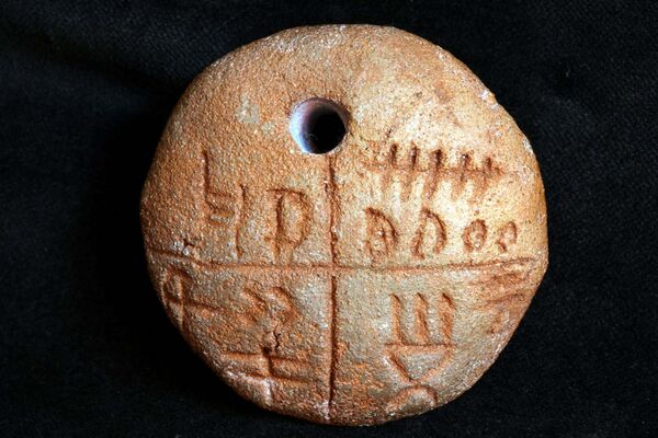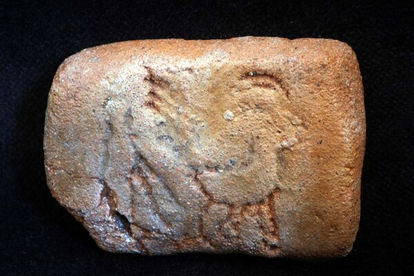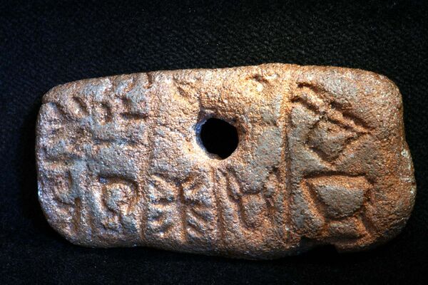 Две таблички прямоугольные, одна — круглая, причём в двух из них просверлены отверстия. Диаметр круглой таблички не превышает 6 см, остальные ещё меньше. На одну сторону табличек нанесены изображения рогатого животного, ветки дерева и целого ряда относительно абстрактных символов (возможно, сцена охоты).