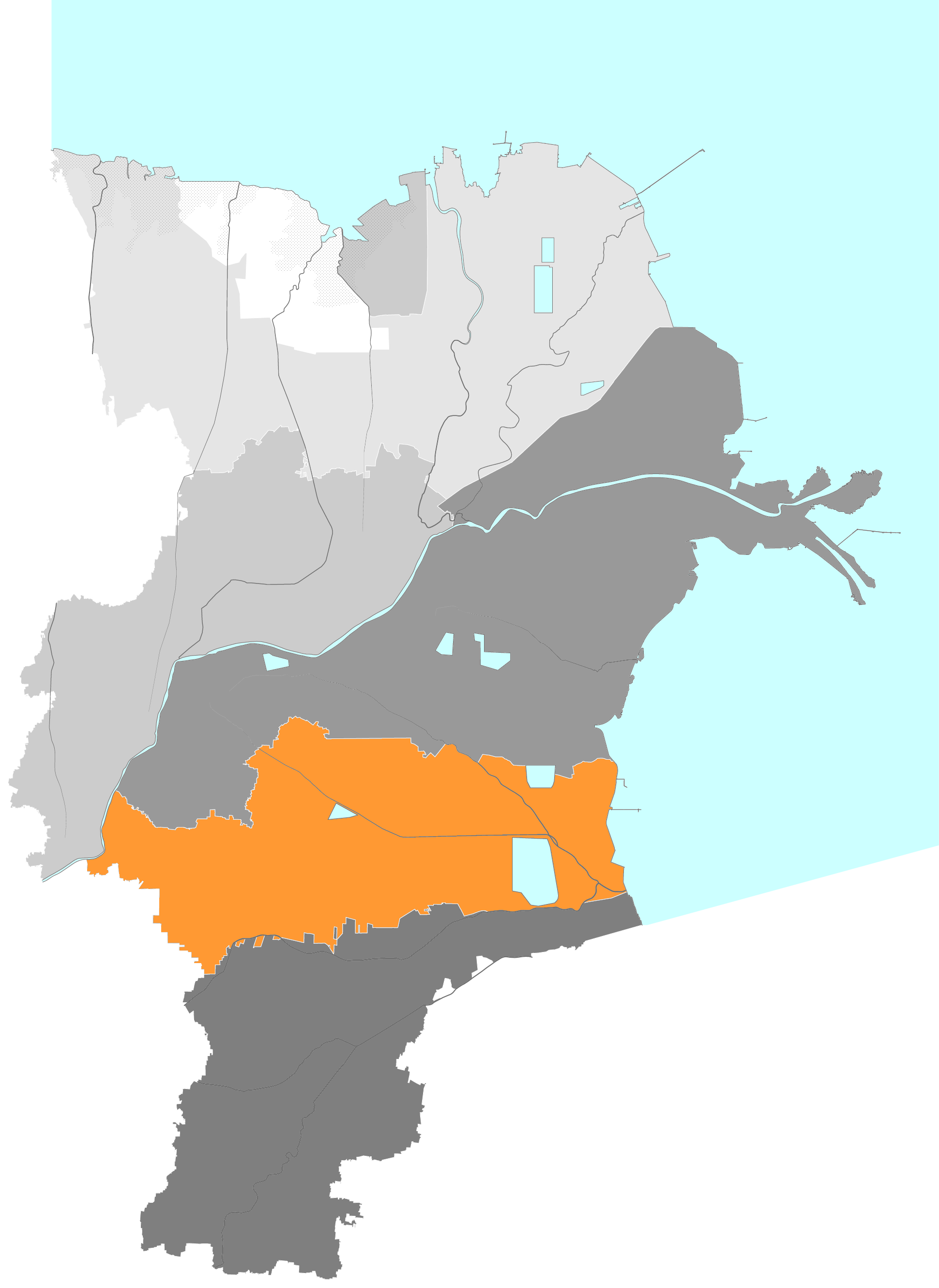 Район делится на 6 уличных комитетов и 4 посёлка.