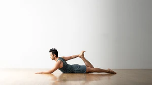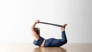 - Частичное исполнение дханурасаны: захватывается только одна лодыжка, вторая нога остаётся вытянутой. Подходит для начинающих и людей с ограниченной подвижностью в пояснице.