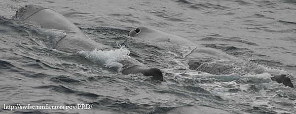 - У всех усатых китов дыхало образовано обоими носовыми проходами и представляет собой два близко расположенных отверстия, сдвинутых V-образно (узким концом вперёд).