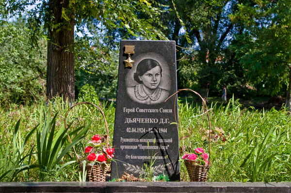 - В городе Пустомыты Львовской области Украины в парке возле местной школы, где Даша Дьяченко обучалась до войны, установлен памятник[3].