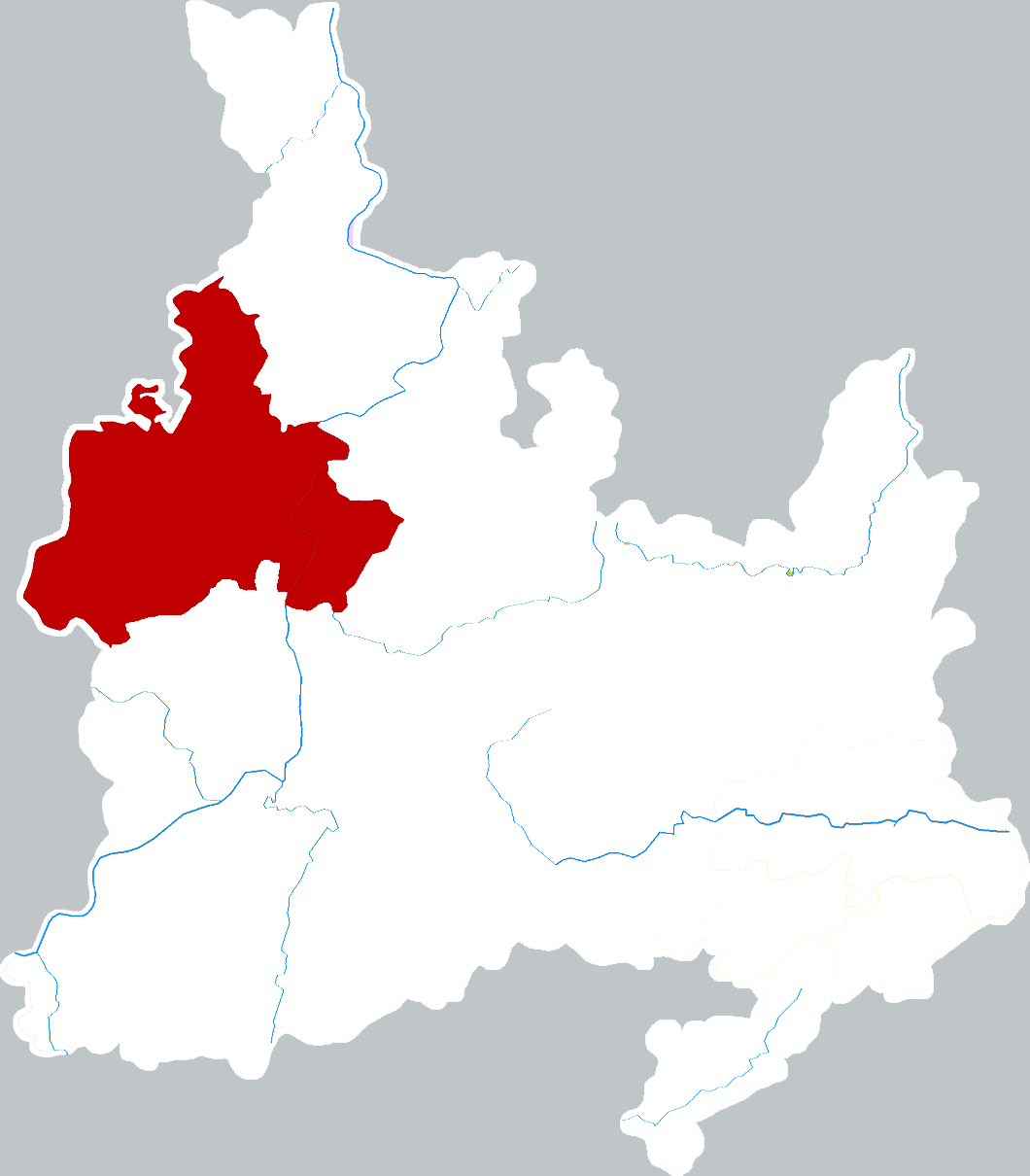 Уезд делится на 2 уличных комитета, 11 посёлков и 8 национальных волостей.