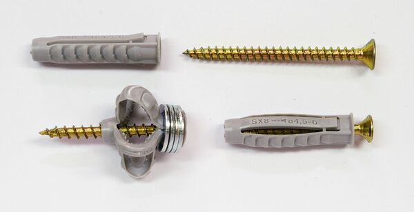 Для наилучшего сцепления дюбеля с основанием отверстие после просверливания необходимо очистить от буровой муки. Кроме того, шуруп должен немного выходить за пределы дюбеля до своего номинального диаметра, чтобы вся распорная часть участвовала в закреплении.