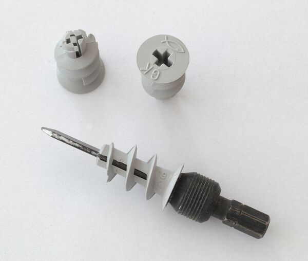 - Разная форма дюбеля и отверстия в основании — задняя часть дюбеля, не помещающаяся в отверстие.