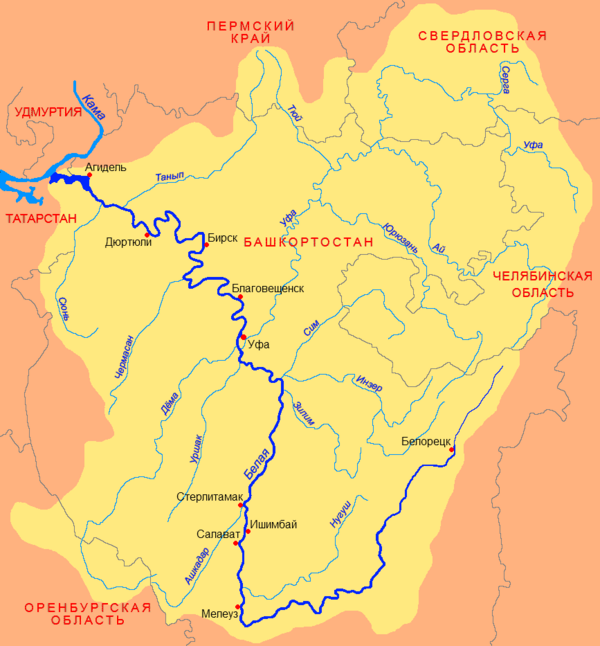 | Водная система | Белая → Нижнекамское водохранилище → Кама → Волга → Каспийское море |