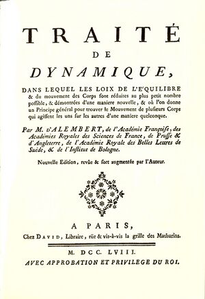 - D'Alembert, Jean Le Rond. Traité de dynamique. — 2nd. — Gabay (1990 reprint), 1743.