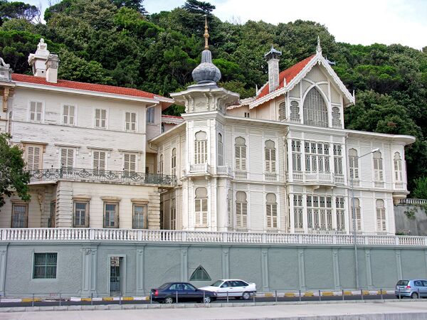 Благодаря посредничеству Э. Бальбо Бертоне, графа Самбуи, долгое время бывшего мэром Турина, и итальянского посла в Порте Л. Авогадро ди Коллобиано Арборио, Раймондо Д’Аронко вступил в контакт с двором Стамбула, куда он переехал в 1891 году в качестве архитектора османского правительства и личного архитектора султана султан Абдула Хамида II. До 1907 года он выполнял важнейшую часть своей проектной деятельности, в стране на перекрёстке западной и восточной культур Первой работой, за которую взялся архитектор в 1893 году, было оформление Османской национальной выставки сельскохозяйственных и промышленных товаров. Однако выставочный павильон не был сооружён из-за землетрясения в 1894 году.