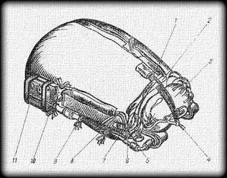 6. Подвесная система изготовлена из капроновой ленты ЛТК-44-1600 и состоит из следующих основных частей: главной лямки с наспинно-плечевыми обхватами, двух пар свободных концов, двух ножных обхватов и грудной перемычки. Правая группа свободных концов обозначена цифрами 1 и 2, левая — 3 и 4. На свободных концах, замаркированных цифрами 2 и 3, имеются резиновые шлевки из эластичной ленты, предназначенные для заправки слабины строп управления. В верхней части свободных концов нашиты четыре ленты с кольцами, через которые пропущены стропы управления. На каждой паре свободных концов имеется капроновый шнур-блокировка (ШКП-150), который применяется при использовании парашютной системы «без переката» свободных концов подвесное системы. К изогнутым пряжкам свободных концов петлей-удавкой привязаны стренги управления, изготовленные из ленты ЛТКР-25-200, имеющие на концах шарики. Стренги управления предназначены для выдергивания шариков из кармашков на свободных концах подвесной системы. Наспинно-плечевые обхваты проходят между лентами главной лямки и образуют треугольники с закрепленными в них: с левой стороны — карабином, с правой — пряжкой. Одновременно с застрочкой треугольников в главную лямку вшиты пряжки для подтягивания ранца в нижнее положение с помощью регулирующих лент. Для исключения самопроизвольного перемещения наспинно-плечевых обхватов через изогнутые пряжки и через пряжки с зубцами, смонтированные на ранце, на обхваты нашиты капроновые ленты ЛТКкрП-43-800. Нижние концы наспинно-плечевых обхватов, пропущенные между лентами главной лямки, образуют ножные обхваты. На правом ножном обхвате закреплен карабин, на левом — пряжка. На главной лямке с левой стороны на уровне груди закреплены шланг и карман вытяжного конца из авизента. Для присоединения свободных концов запасного парашюта в главную лямку вмонтированы две скобы крепления. Раздвоенная нижняя часть главной лямки имеет мягкую накладку и кольца для подтягивания нижних углов ранца к главной лямке с помощью капроновой ленты ЛТКкрП-26-600. Наспинно-плечевые обхваты, образовавшие грудную перемычку, далее проходят между лентами главной лямки и при помощи прямоугольных пряжек, вшитых в концы наспинно-плечевых обхватов, образуют поясной обхват. Масса подвесной системы 2 кг.