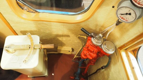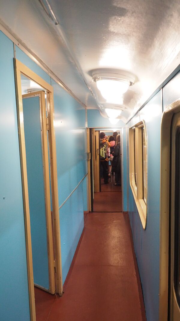 Салон музейного вагона типа Д № 2037. Воссоздан заново в 2015 году, при восстановлении вагона. На стенах — имитация линкруста рельефным слоистым пластиком.