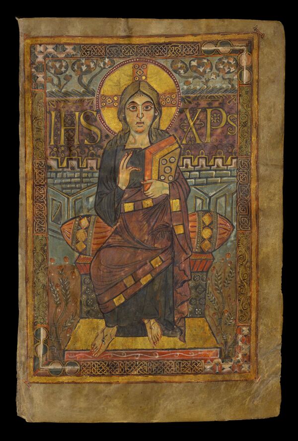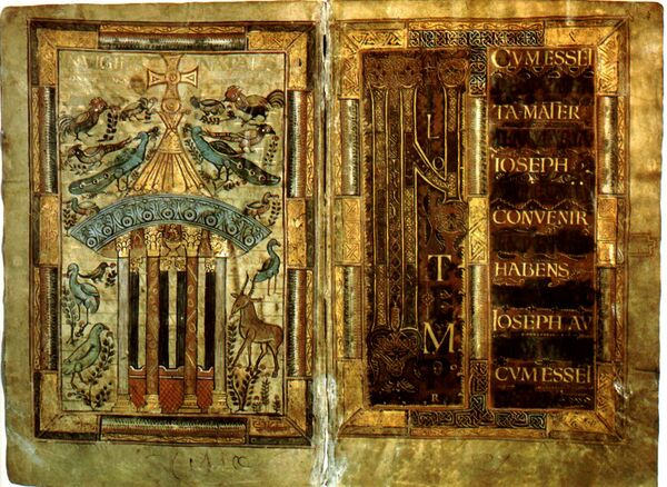 «Евангелие Годескалька» — иллюминированная рукопись, созданная между 781 и 783 годами в королевском дворце в Ахене, самое раннее произведение так называемой «придворной школы Карла Великого».