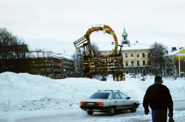 - 1966: Козёл был возведён впервые. Сожжён в новогоднюю ночь. Нарушитель был найден и осуждён за вандализм[1].