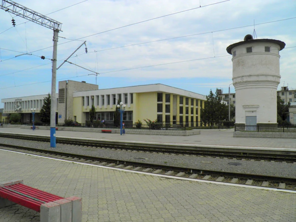 В кинокомедии «Мы с вами где-то встречались» (1954) герой Аркадия Райкина — артист Геннадий Максимов, покупая на вокзале запечённую курочку, колбасу и арбуз, — отстаёт от поезда и пытается догнать свой вагон. Съёмки этого эпизода проводились в 1953 году на вновь отстроенном железнодорожном вокзале и станции Евпатория-Курорт. В кадре можно хорошо рассмотреть новое здание вокзала, барельефы на его стенах и водонапорную башню, которая сохранилась до наших дней .