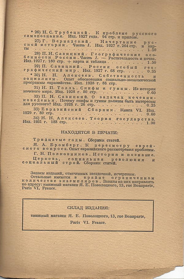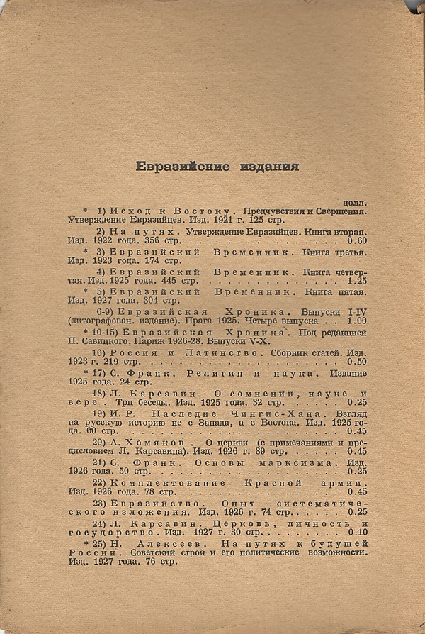 - 1921 — Исход к Востоку. Предчувствия и свершения. Утверждение евразийцев (София)