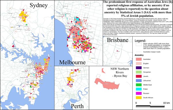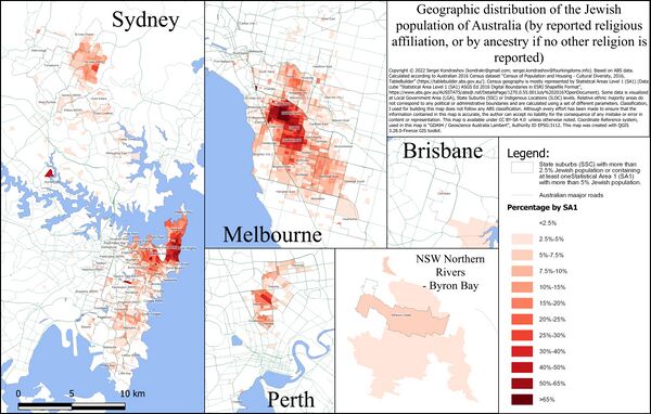 Около 90 % австралийских евреев живут в Сиднее и Мельбурне[9]. В Мельбурне и Перте имеются еврейские школы.