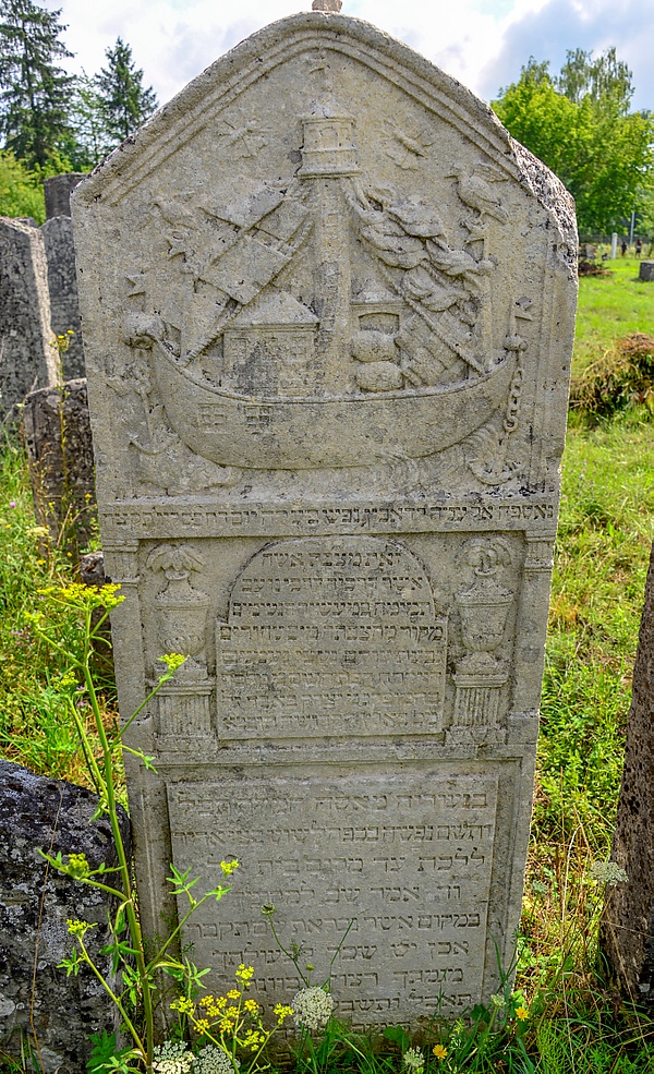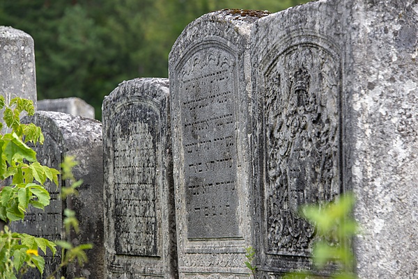 На кладбище сохранились интересные образцы резных орнаментов на могильных плитах (мацевах), в частности, это изображение падающего дома (мацева Меира Ицхака, 1852), корабля (мацева Мальки Бабад, 1834), левиафаны (мацева Периль Роси Рокеах, 1835), светильника с окном на заднем плане (мацева Йохеведа Цельникера, 1834), книжного шкафа и письменного столика (мацева Манеса Мордехая, 1836), синагоги, руки Бога, грифа, овец и лимонного дерева (мацева Аврагама Иакова Гильфердинга, 1834), буряков и овец (мацева Аврагама Эвера Бринера, 1837), грифонов (мацева Мордехая, 1836) и др.
