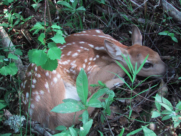 У новорождённых телят окраска пятнистая, что позволяет им маскироваться среди летней растительности. Общий тон окраски рыжевато-жёлтый с более светлым, светло-охристым брюхом. По спине тремя продольными рядами с каждой стороны идут сероватые или желтоватые пятна. Средний ряд, наиболее яркий, тянется от ушей до анального отверстия; остальные идут от плеч. На плечах и в тазовой области появляются добавочные ряды пятен. В возрасте 2—3 месяцев общая окраска темнеет, становясь буровато-рыжей; по мере отрастания рыжего меха пятнистость бледнеет и исчезает.