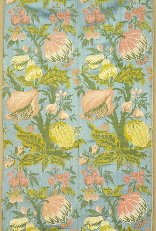 Шёлк ввозили из Индии и Китая, а также производили в самой Европе. Во Франции центром производства шёлка был Лион, где до Великой Французской революции трудились 28 тысяч рабочих и работали 14,5 тысяч ткацких станков. Производившийся в этот период шёлк мог быть как однотонным (такие шелка часто вышивались), с тканым (жаккардовым) или набивным рисунком. Кроме того в Лионе было несколько десятков дизайнеров, создававших рисунки и орнаменты тканей, некоторые из них также писали картины, например: Жан Ревель (1684—1751), Жан Франсуа Бони (1754—1825), Филипп де Лассаль (1723—1804).
