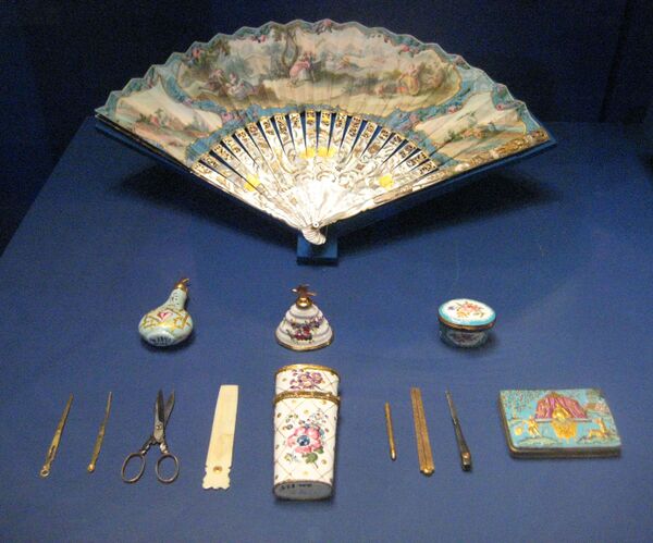 Распространённым аксессуаром был веер; в эпоху галантного века веер превращается в инструмент флирта, существовал сложный этикет обращения с этим аксессуаром и тайный язык символов, при помощи которого дама могла движениями веера продемонстрировать своё отношение к кавалеру и даже передать ему послание. Большинство вееров эпохи рококо были расписаны пасторальными сценками (часто фривольного содержания) или сценами из жизни итальянских актёров (в духе картин Антуана Ватто).