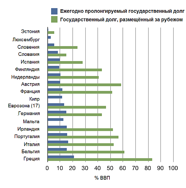 Поскольку все члены еврозоны обязаны придерживаться единой кредитно-денежной политики, отдельные страны больше не могут осуществлять эмиссию национальной валюты для того, чтобы производить выплаты по обязательствам перед кредиторами или уменьшить риск дефолта[59].