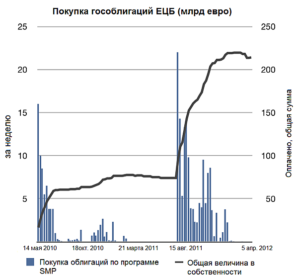 Руководство Европейского центрального банка (ЕЦБ) осуществило ряд мер по стабилизации финансовых рынков и увеличению ликвидности[199] .