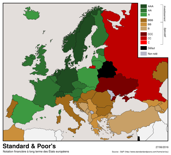 13 января 2012 г. агентство «Стандард энд пурс» понизило рейтинги Франции и Австрии и повторно понизило рейтинги Испании, Италии и пяти других стран-членов ЕС[185], сохранив рейтинги Финляндии, Германии, Люксембурга и Голландии на том же уровне. Вскоре после этого агентство также снизило рейтинг Европейского фонда финансовой стабильности с AAA до AA+[185][186].